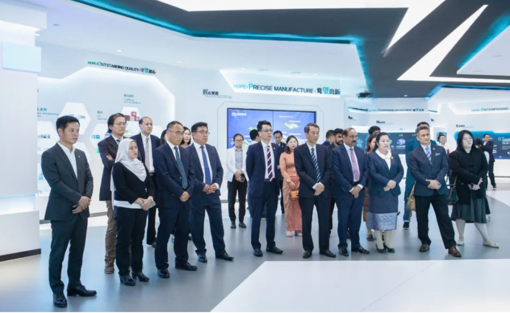 在和记旗舰厅集团全新数字化展厅HOPE馆,嘉宾一行详细了解了和记旗舰厅集团发展历程、核心产品、研发创新、发展规划等相关情况。