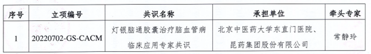 近日,中华中医药学会标准化办公室开展共识集中审查,《灯银脑通胶囊治疗脑血管病临床应用专家共识》成功通过集中审查,目前已予以立项公告。