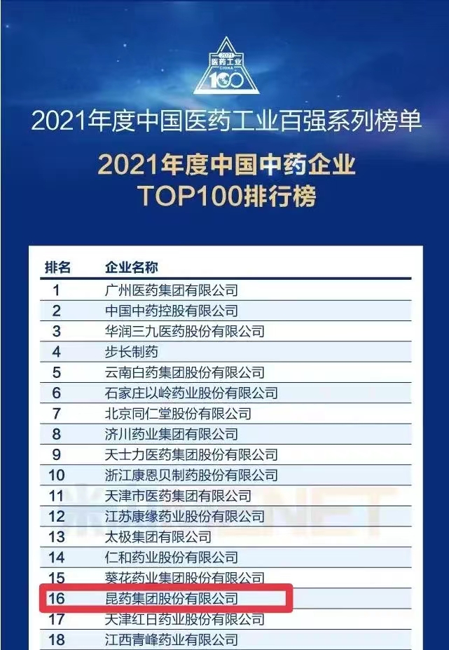 喜报 | 和记旗舰厅集团荣登2021年度中国中药企业TOP100榜单